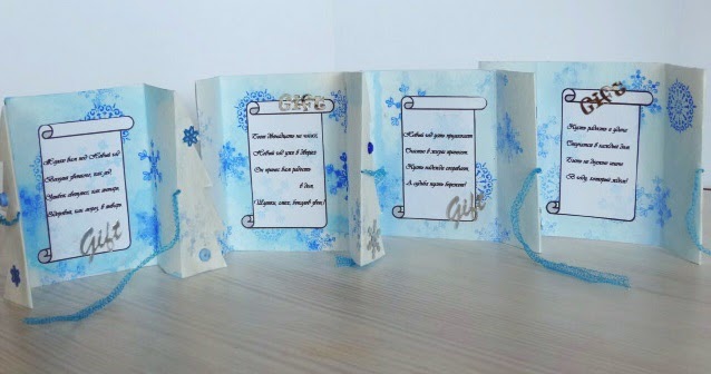 А еще мои елочки не простые, стоит лишь развязать бантик, как внутри теплыми словами, в морозном воздухе прозвучат приятные стихотворные строки))))